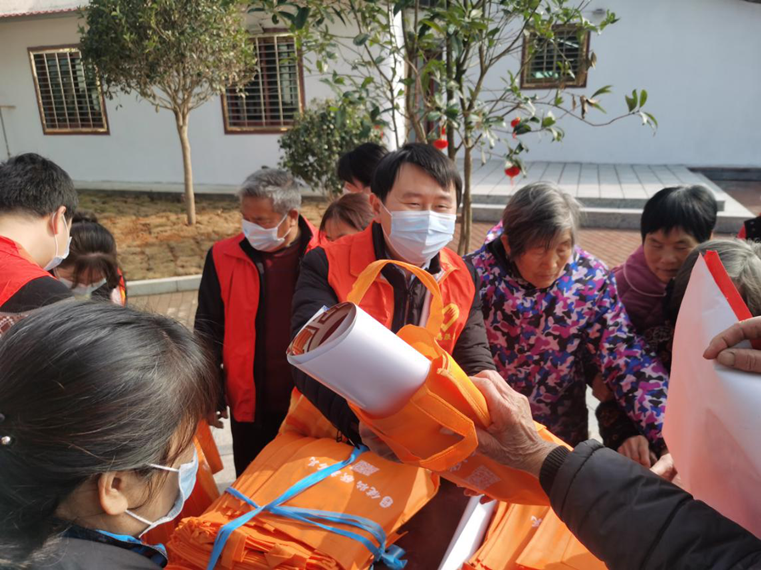 1月(yuè)28日(rì),攸縣春聯街(ji$←★ē)道(dào)春風(fēng)社區(qū),志(zhì)願者為(wèi)社" 區(qū)居民(mín)送年(nián)曆。圖片來(lái)源:株洲文(wén)明(míng)網