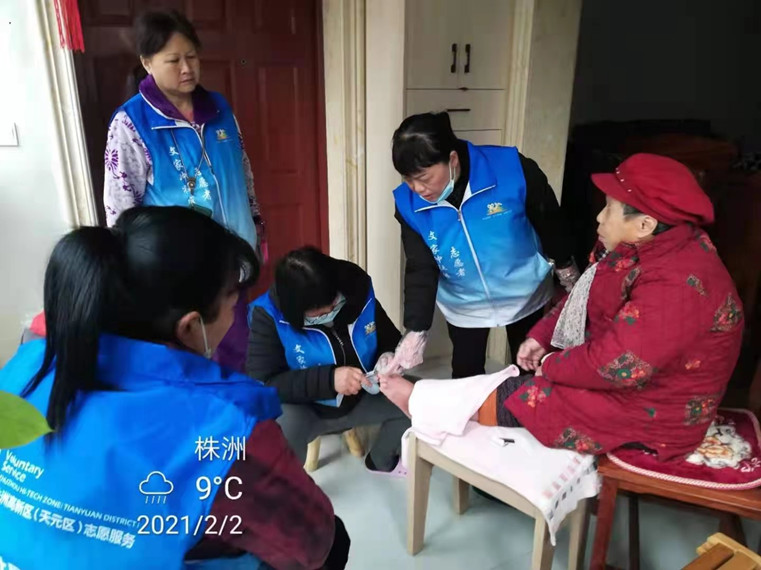 2月(yuè)2日(rì)上(shàng)午,文(wén)家(jiā)沖社區"≥(qū)志(zhì)願者看(kàn)望轄區(qū)內β↔≈¥(nèi)行(xíng)動不(bù)便的(de)老(lǎo)人(rén)。♣α∑圖片來(lái)源:株洲文(wén)明(míng)網