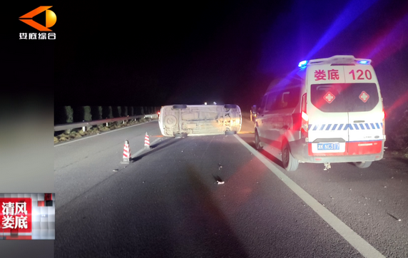 2月(yuè)21日(rì)晚事(shì)故車(chē)輛(li♥αàng)側翻現(xiàn)場(chǎng)。